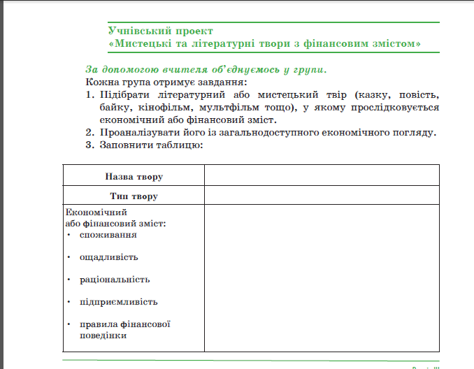Навчальний проєкт "Мистецькі та літературні твори з фінансовим змістом"